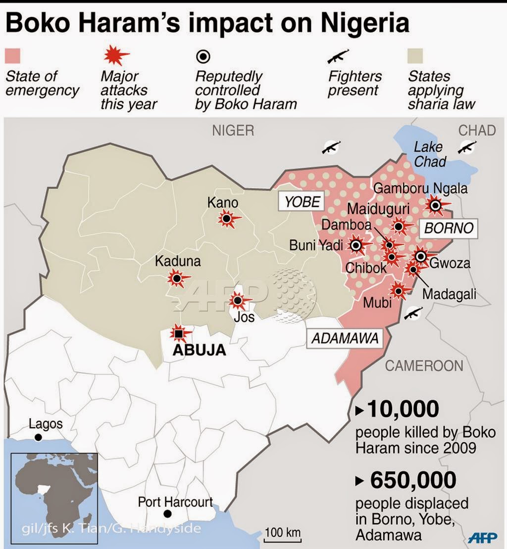 Above is an INFOGRAPHIC Map of Nigeria locating recent attacks by Boko Haram, worst affected areas.