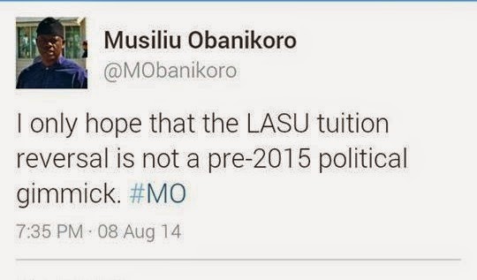 Well, Musiliu Obanikoro believed that Fashola did the reverse to gain electorates political favour ahead of the elections in 2015!